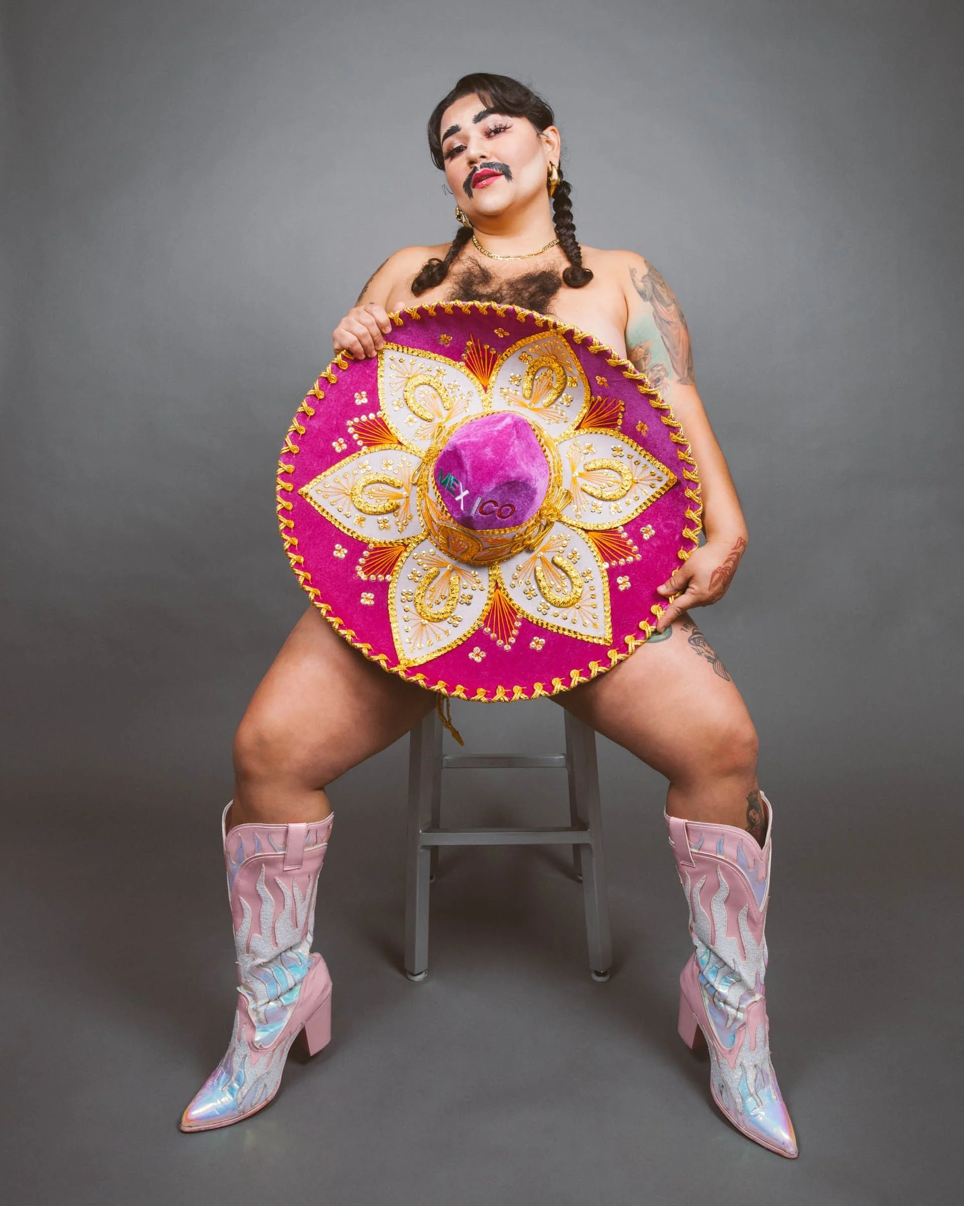 Jota (pronounced HO-TAH) Mercury is an award-winning Latinx and Indigenous drag performer, MC, and self-proclaimed "professional ham," known for putting the "cheese in machismo." Jota has performed at a wide array of shows, including ¿Dónde Está Mi Comedy?, The Ruckus Revival, Oaklash, Rebel Kings of Oakland, and SF Sketchfest. Their work challenges traditional notions of masculinity while celebrating queer identity, often blending humor and cultural commentary. Jota's performances have spanned from Las Vegas to Panama City, showcasing their dynamic presence in both drag and burlesque. With accolades from competitions such as California Burlypicks 2019, where they earned titles like Master of Comedy and Lip Sync, Jota’s talents continue to leave a lasting impact on stages across the world