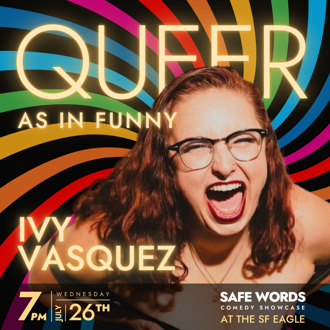 Safe Words, Queer Sex-Positive Comedy Showcase takes place at 7pm every 4th Wednesday of the month at the SF Eagle Bar. Tickets are available for a suggested price of $15-$25, but ultimately are 'pay what you can'. Don't miss out on this show - grab your tickets now and come join us for a night of comedy and entertainment. We can't wait to see you there!